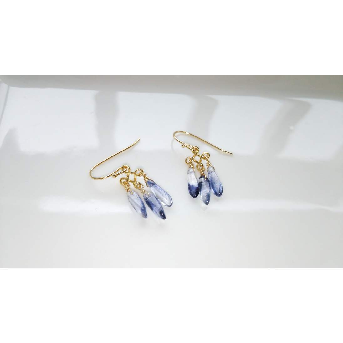 ブルーの綺麗なチェコガラスとスワロフスキーでピアスを作りました。