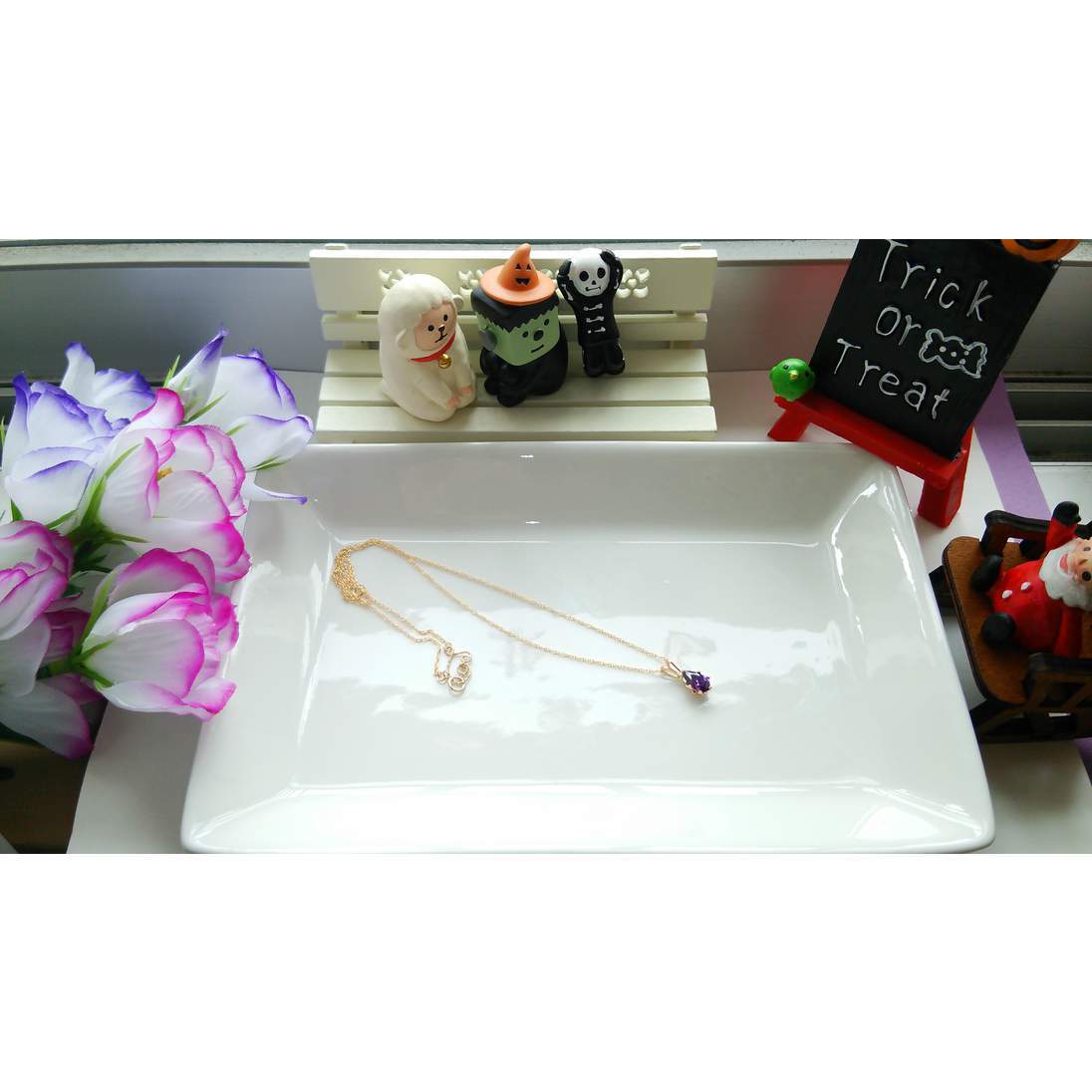 濃いめでシックな、キュービックジルコニアのアメジストで、一粒ネックレスを作りました♪(*´ω`*)