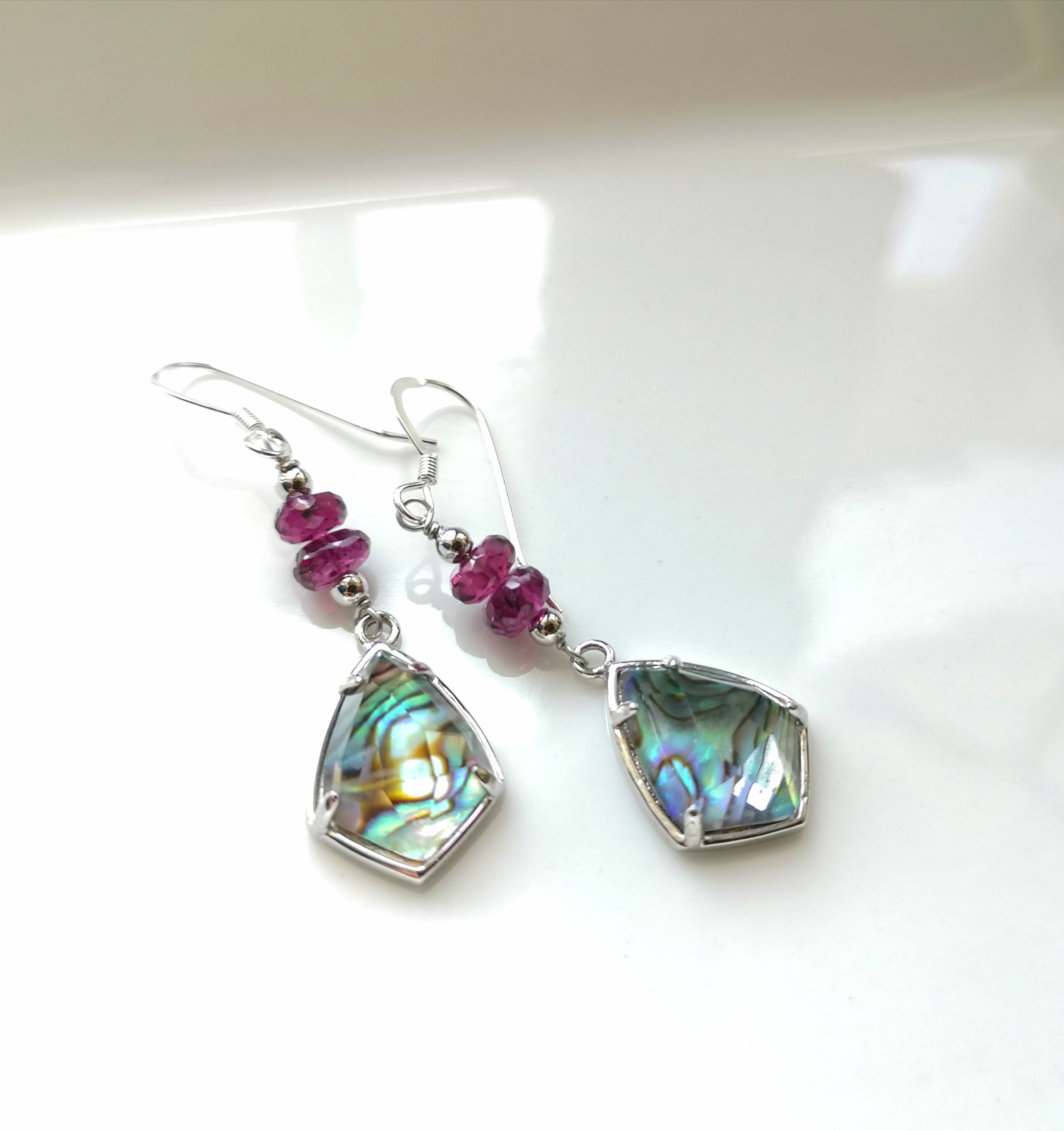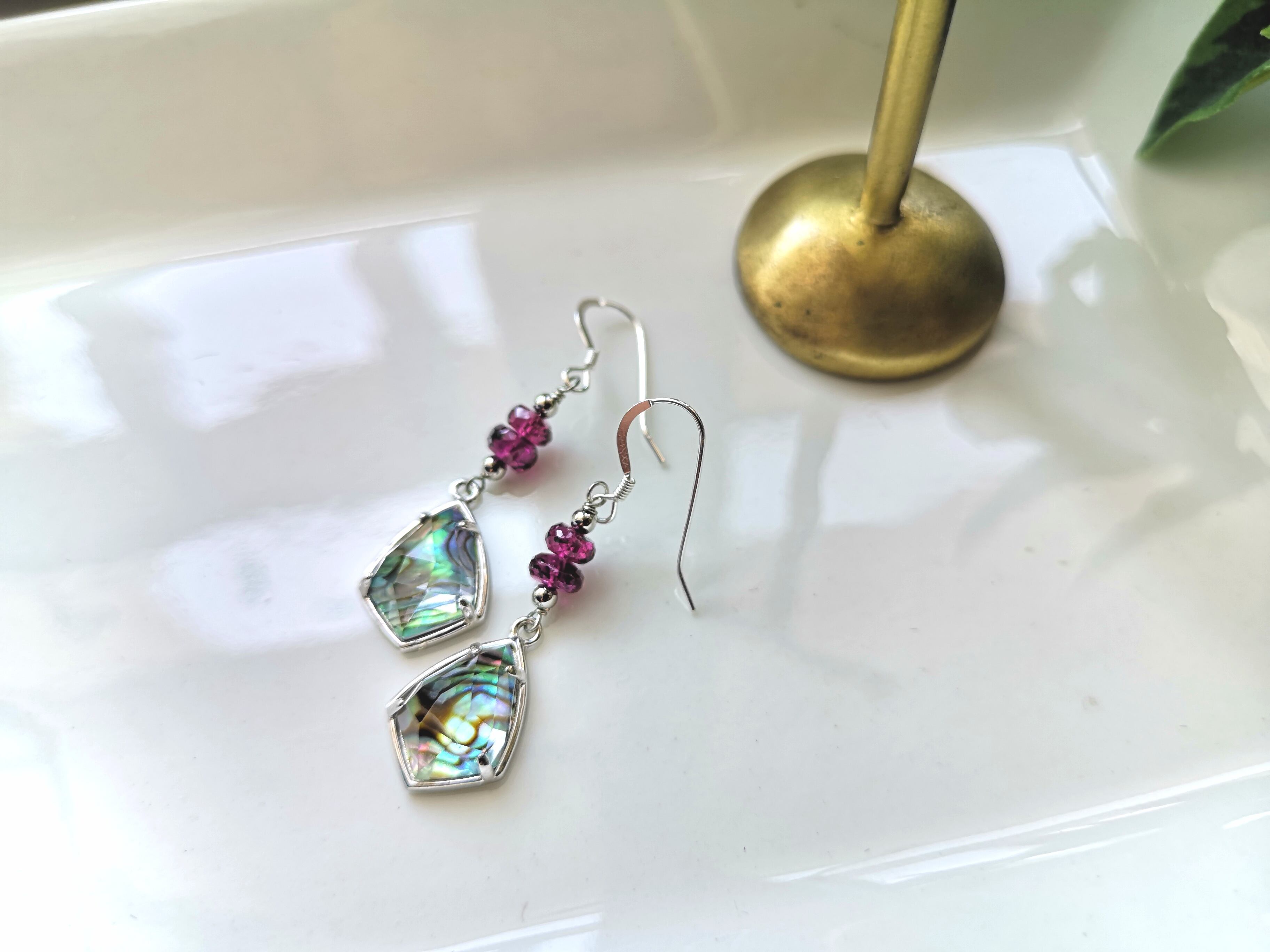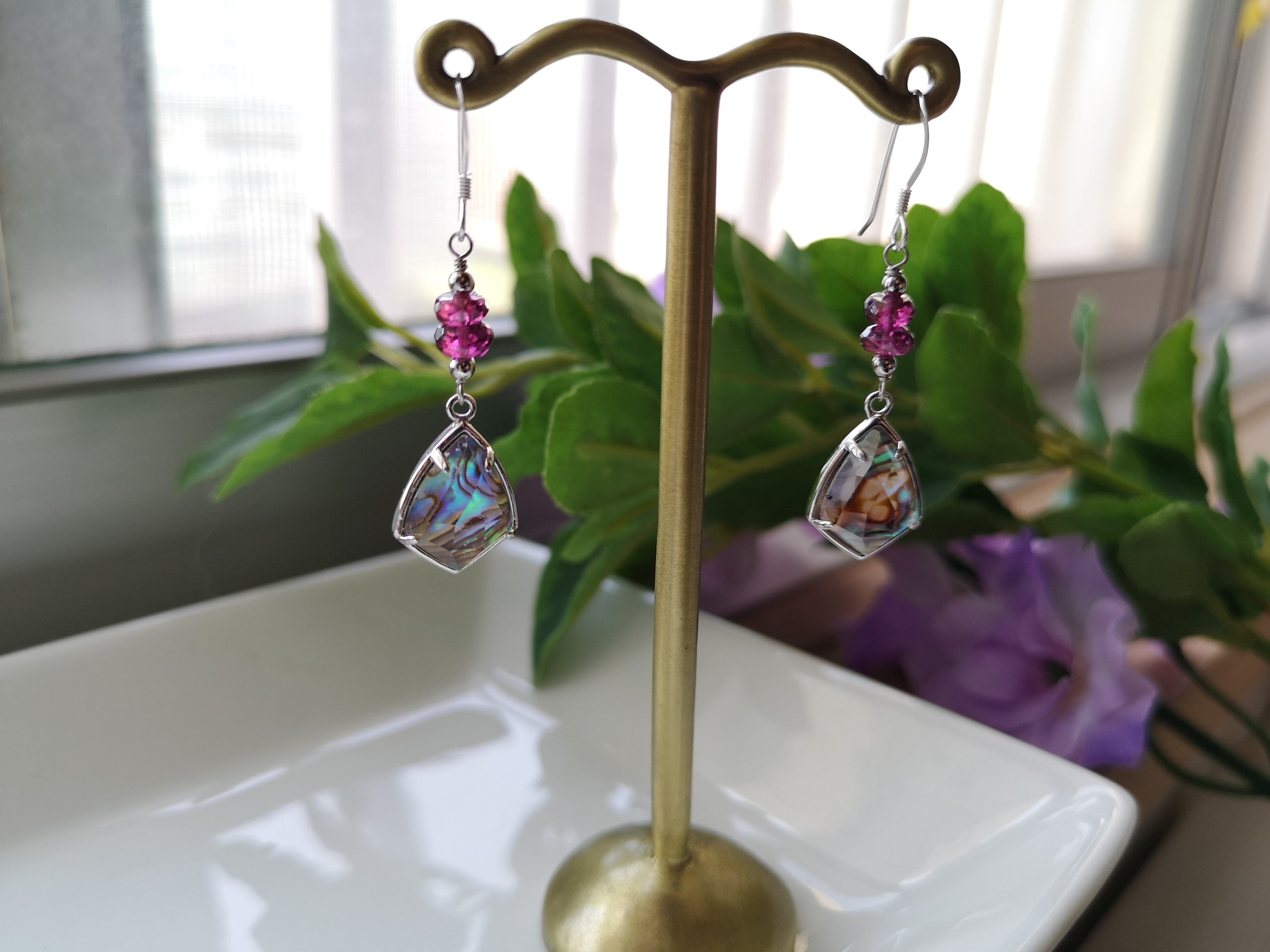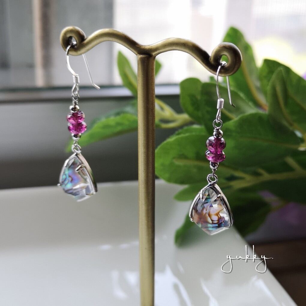 アバロンシェル/クリスタル✽宝石質ロードライトガーネットAAA*シルバーフィルドピアス