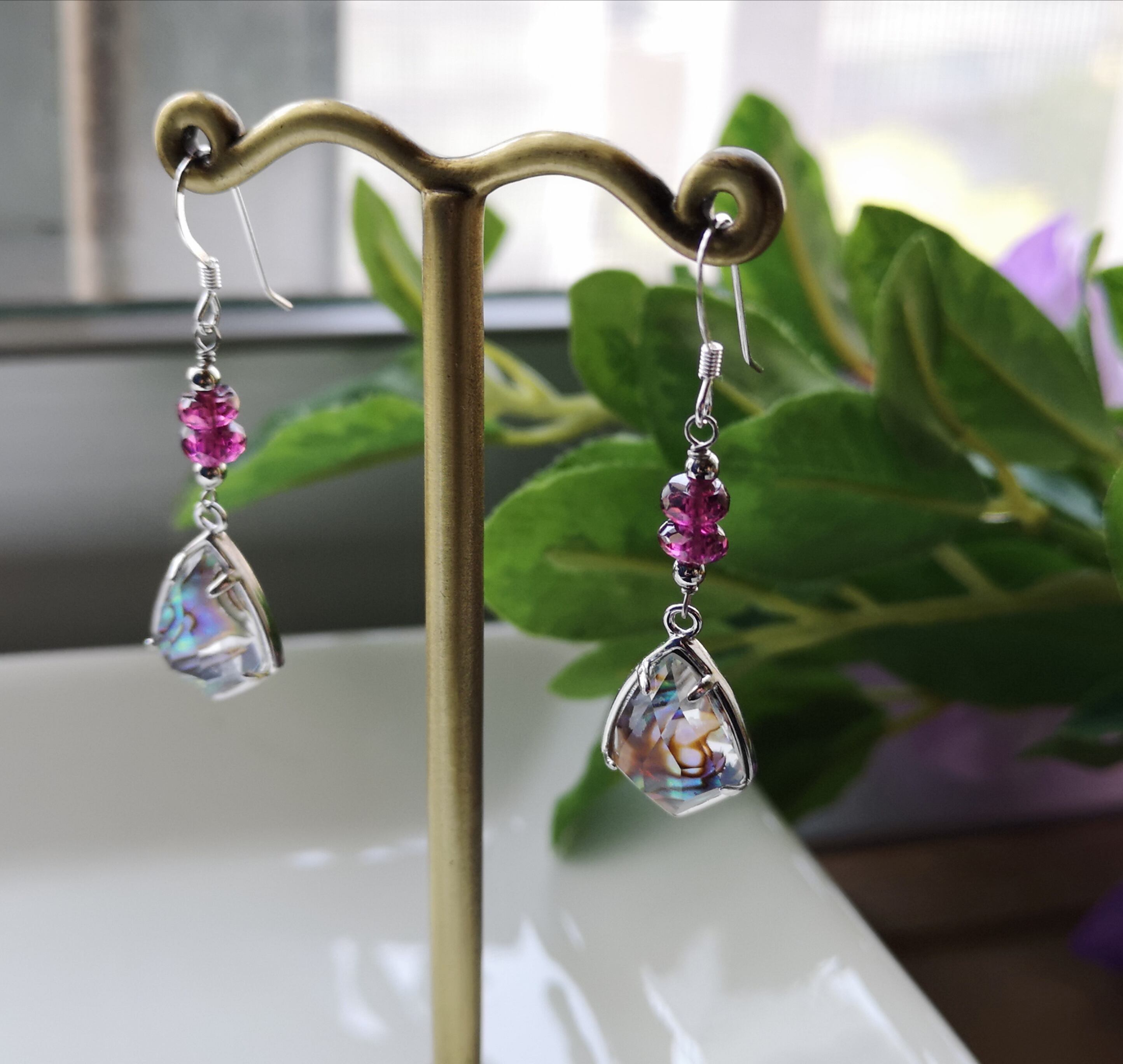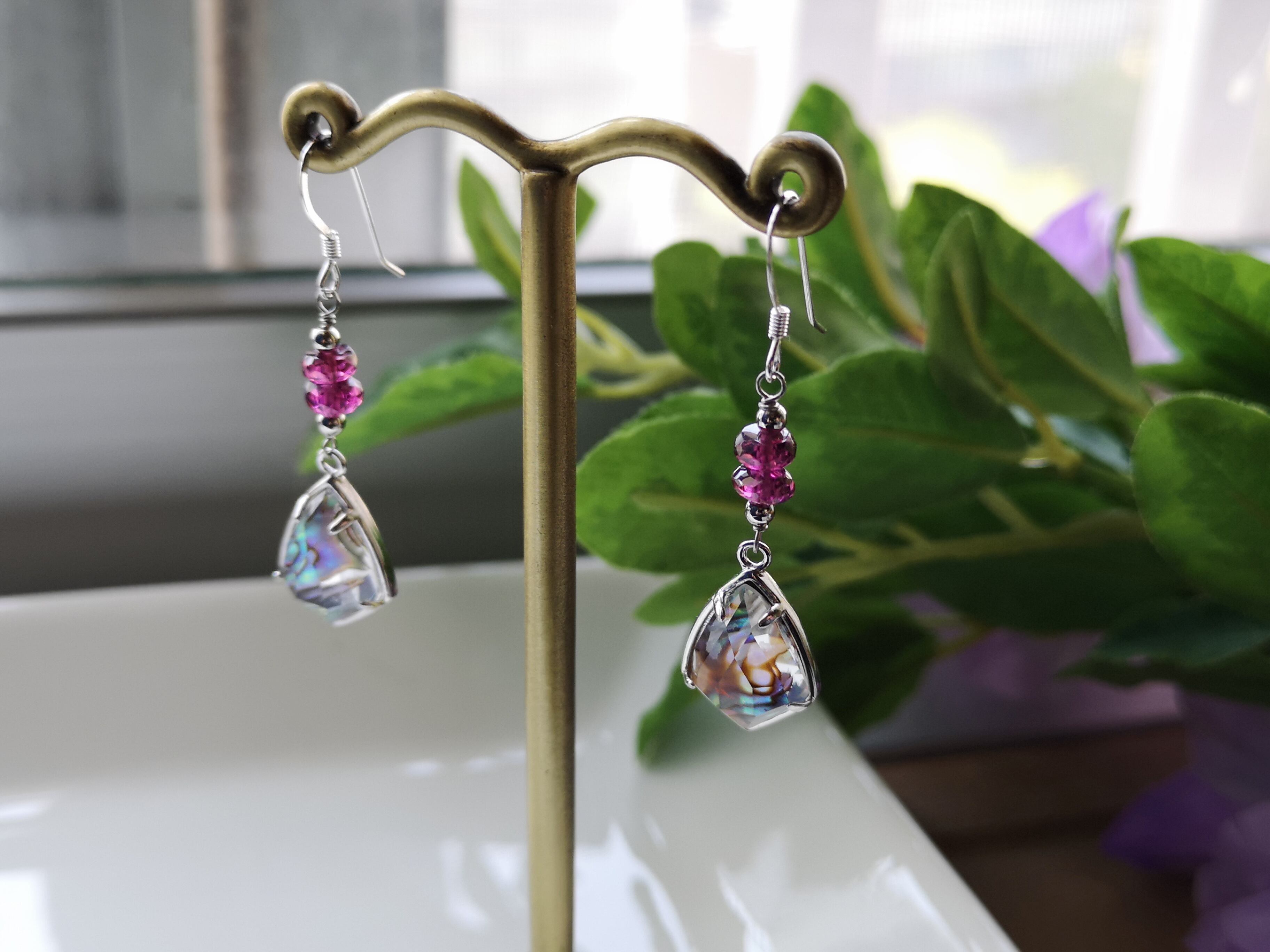 濃いピンクカラーのロードライトガーネットを合わせてピアスを作りました。(о´∀`о)