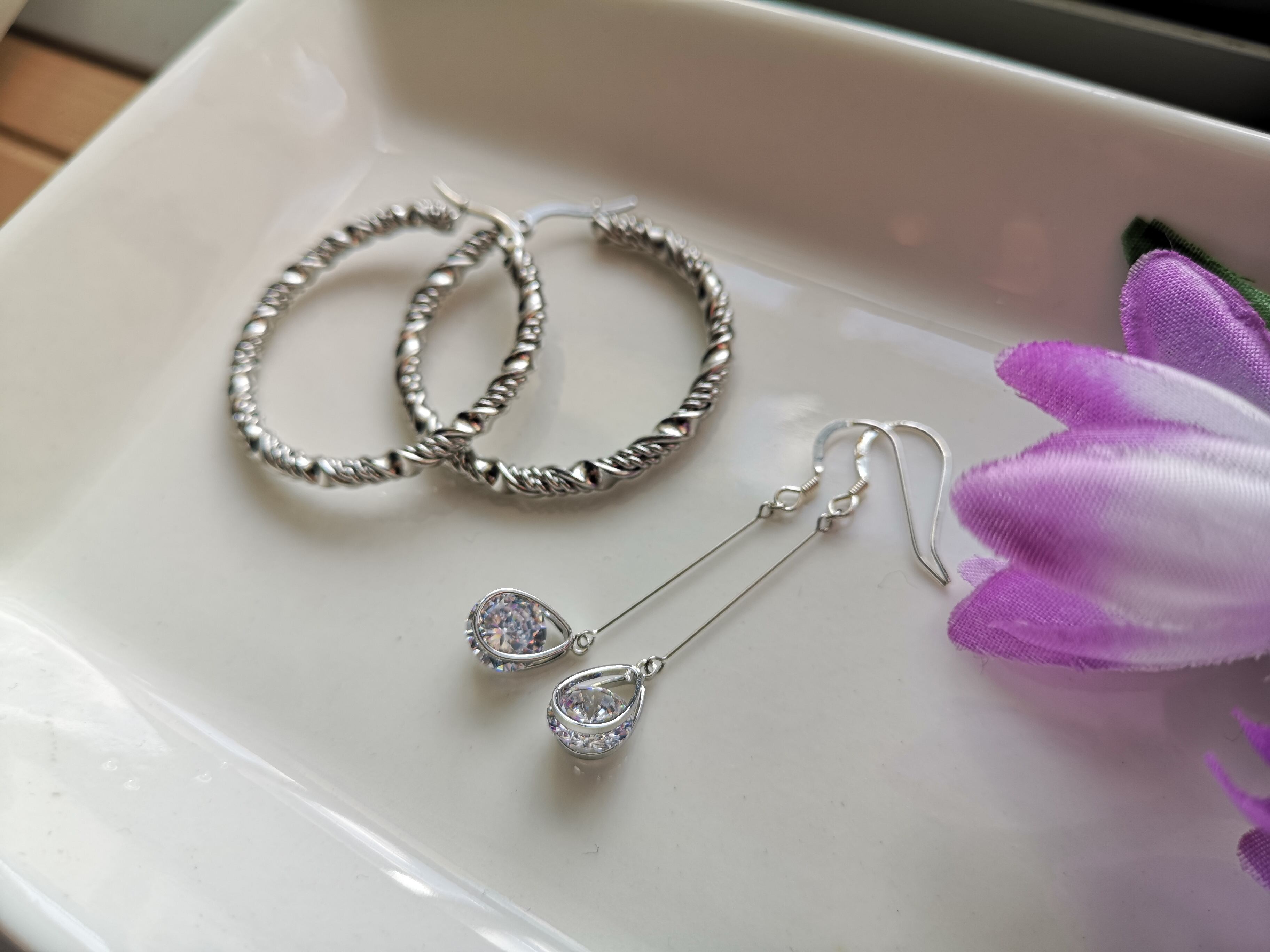 【yu-様御予約品】316Lサージカルステンレスフープピアス/ジルコニアドロップsfピアス
