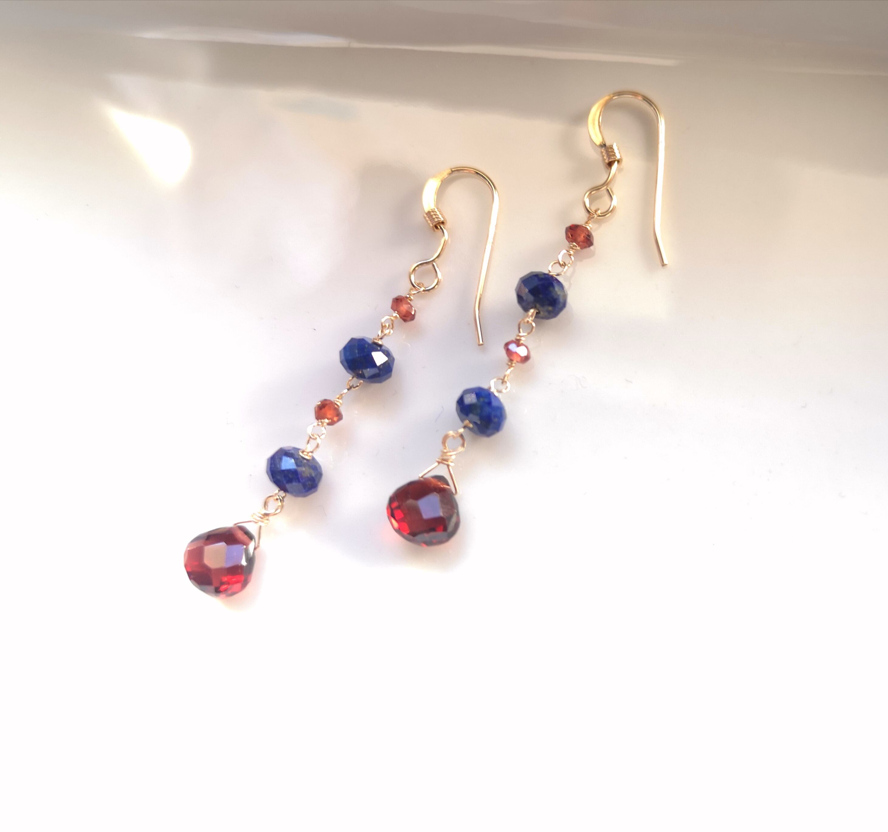 小さなガーネットとラピスラズリを控えめにあわせて、ピアスにしました。
