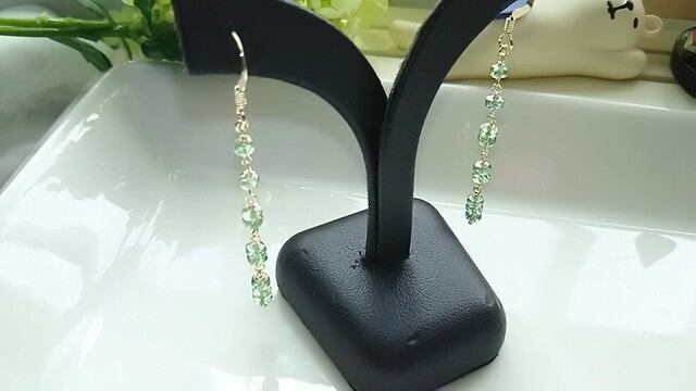 ボタンカットのグリーンアパタイトですが、カットがとても綺麗なピアスです♪( ・∇・)