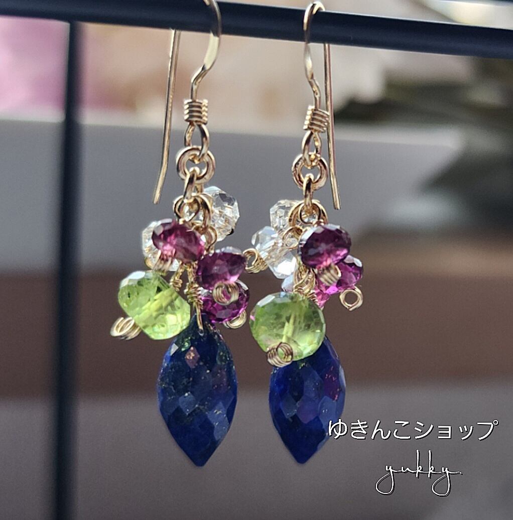 宝石質ラピスラズリ✽ペリドット&ロードライト14kgfピアス/イヤリング